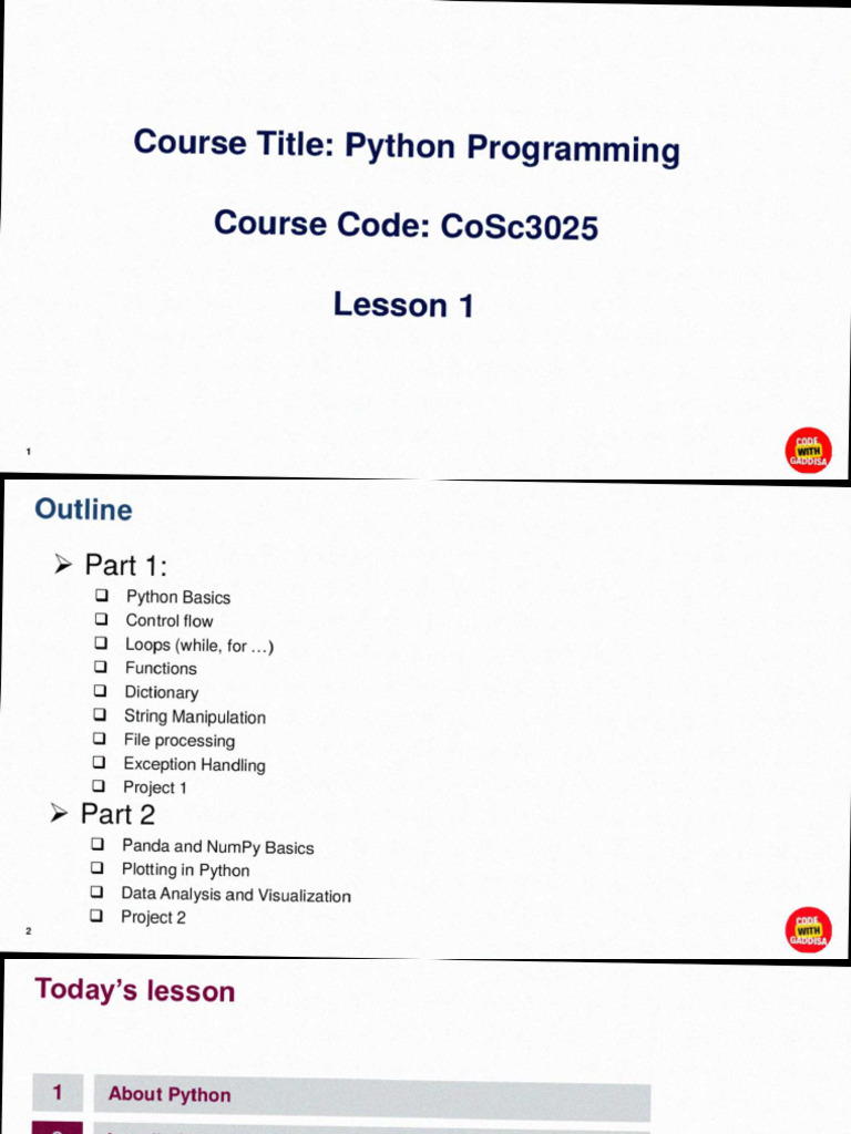 Based on this image's title: “Lesson 1 Python Basics | PDF”