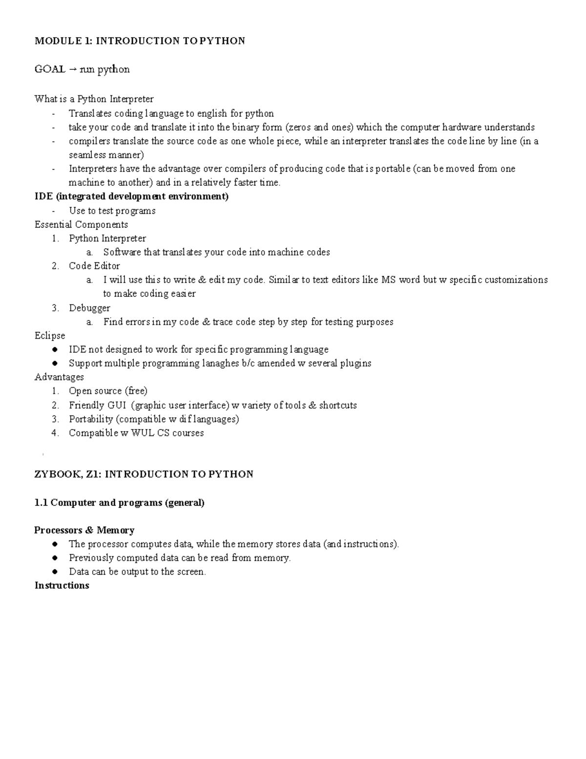 Intro to Python Chapter 1 Notes - Chapter 1 Notes: Introduction to ...