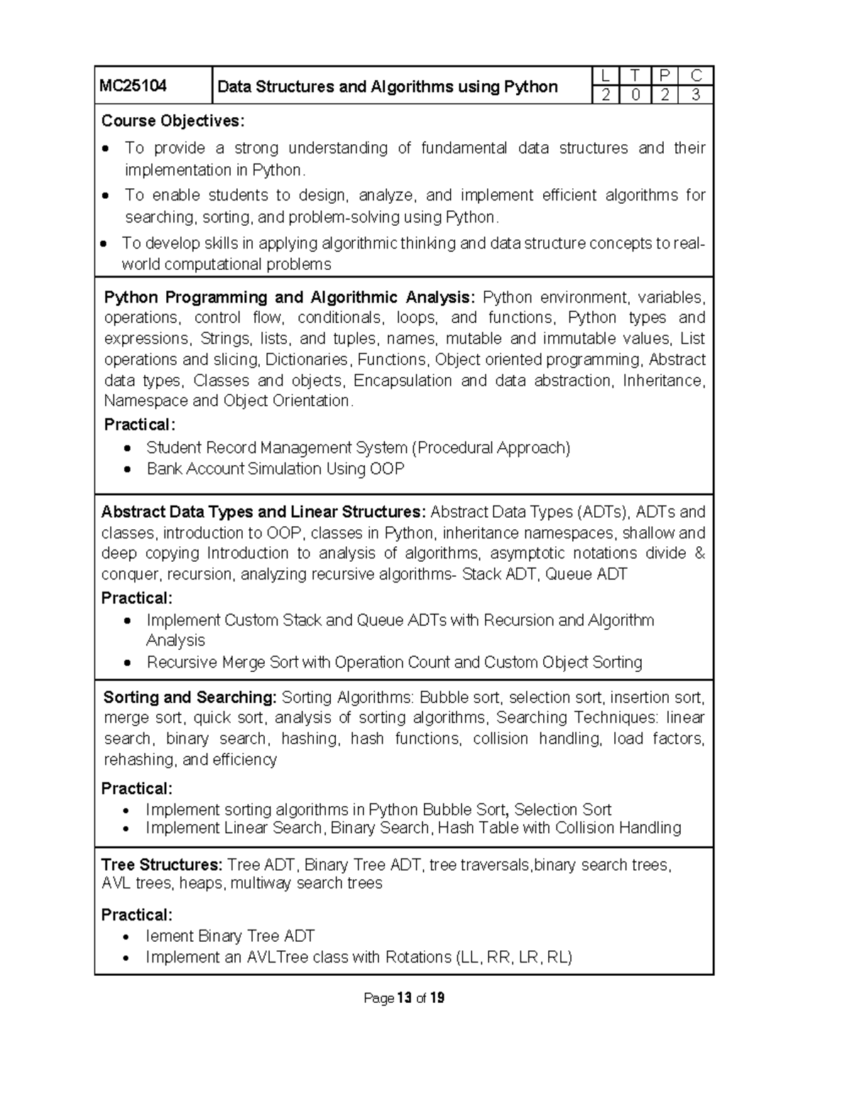 MC25104 - DATA STRUCTURES AND ALGORITHMS USING PYTHON OOPS CONCEPT ...