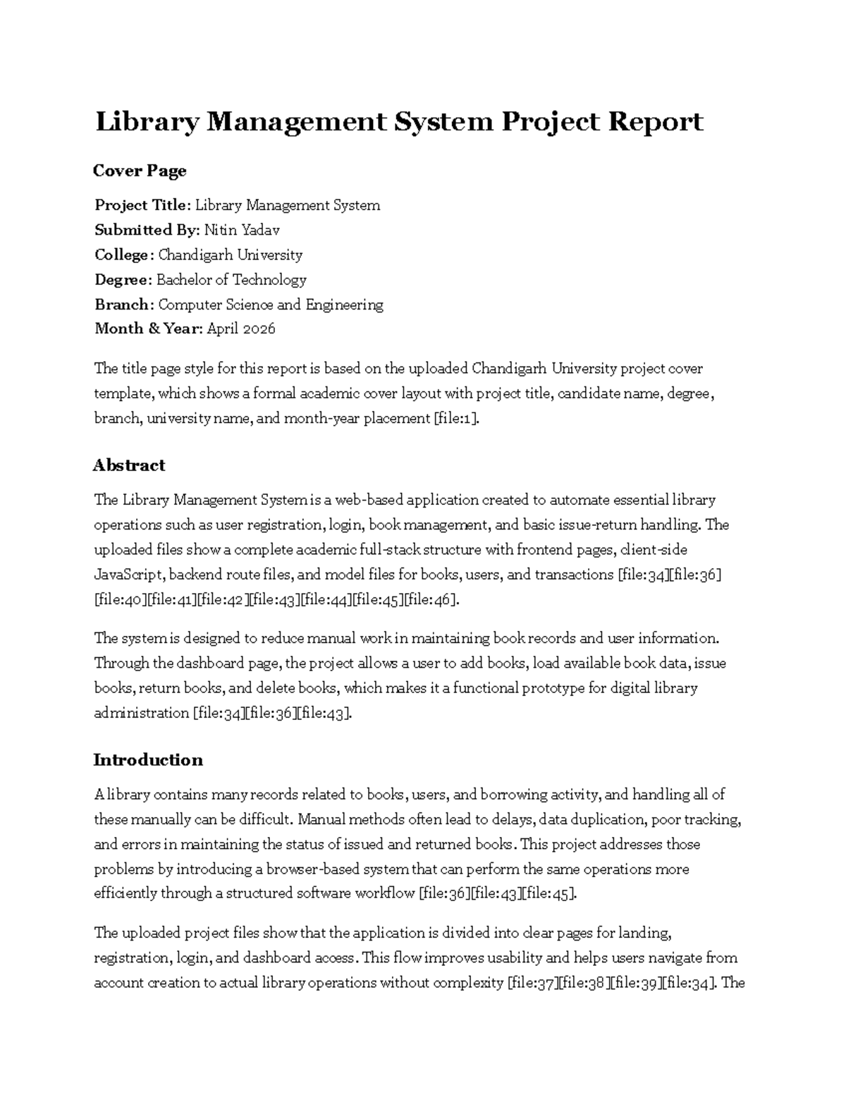 Library Management System Project Report - B.Tech CSE - Studocu