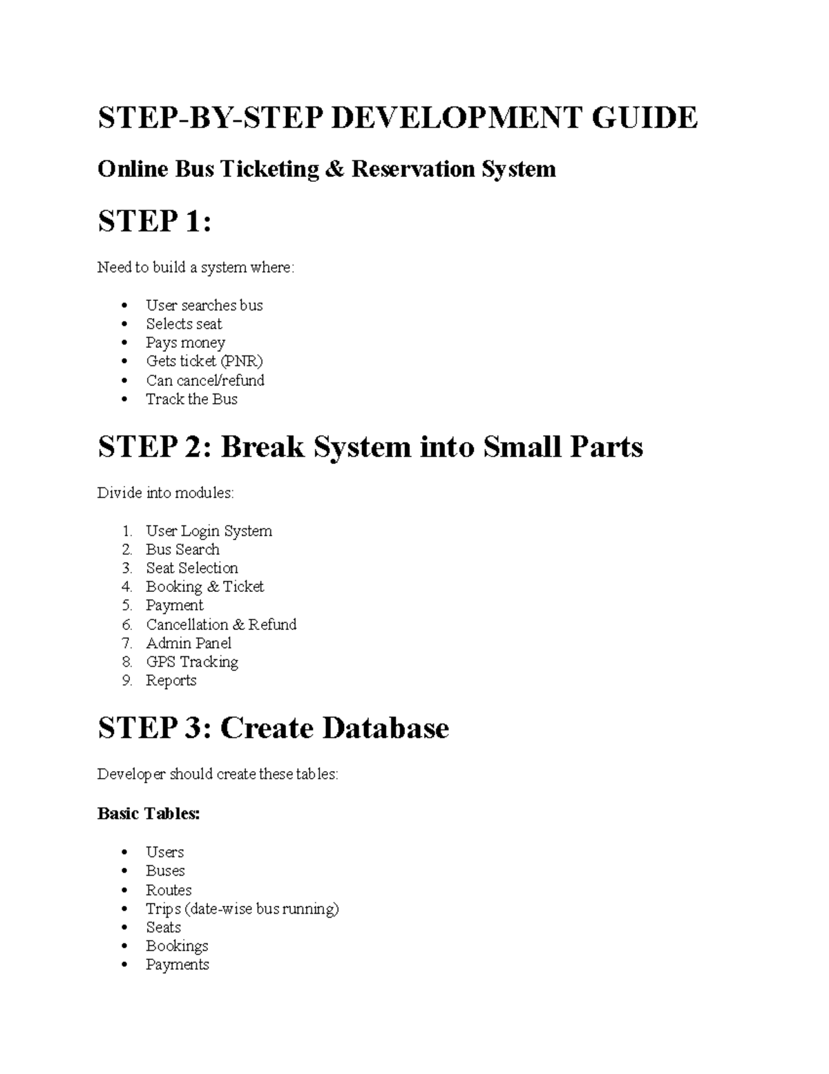 DEVELOPMENT GUIDE: Online Bus Ticketing System (Project Steps) - Studocu
