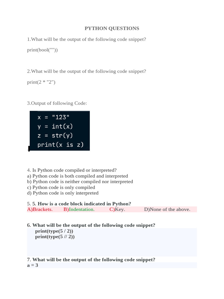 Based on this image's title: “Python Tutorial Questions part-1 | PDF
