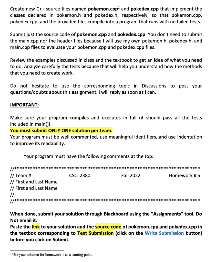 Solved This homework builds on your previous Pokémon | Chegg.com