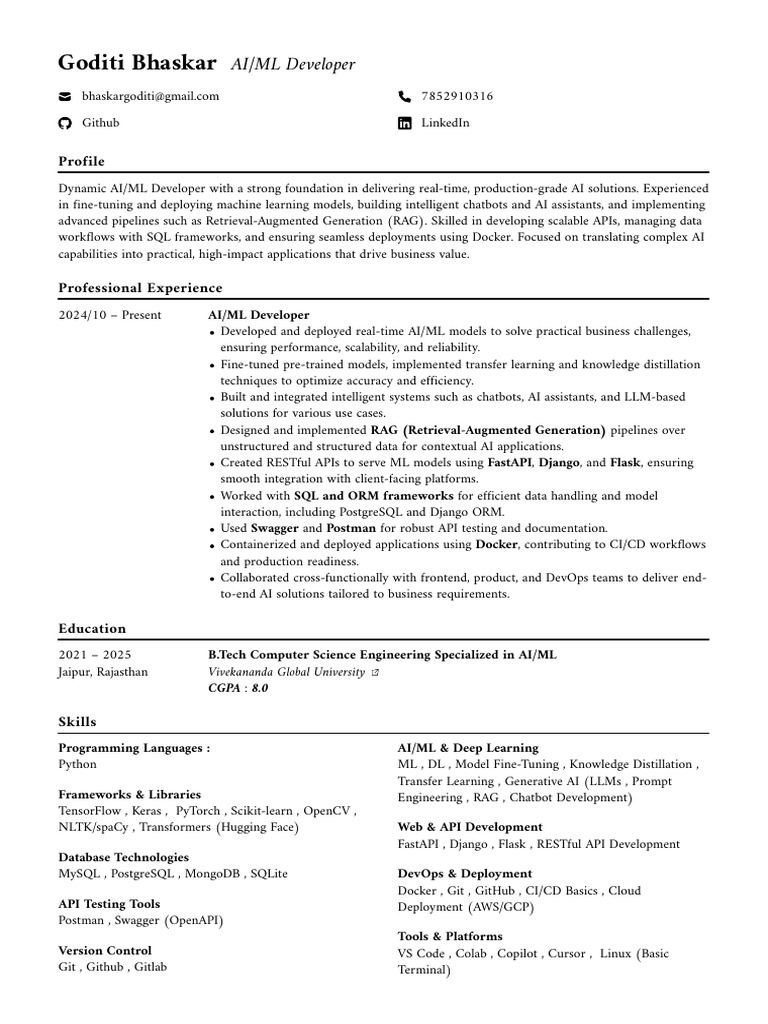 Goditi Bhaskar FlowCV Resume 20250810 | PDF | Artificial Intelligence ...