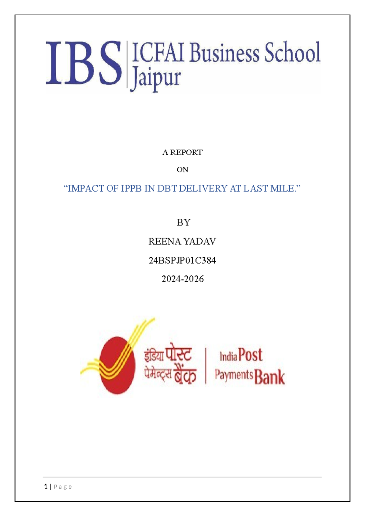 IPPB in DBT Delivery: A Comprehensive Report by Reena Yadav ...