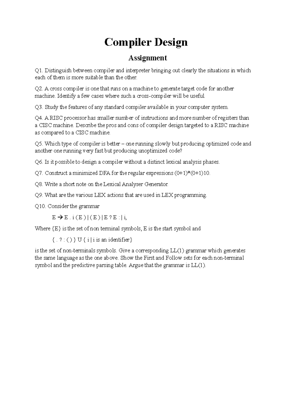Compiler Design Assignment: Key Concepts and Analysis - Studocu