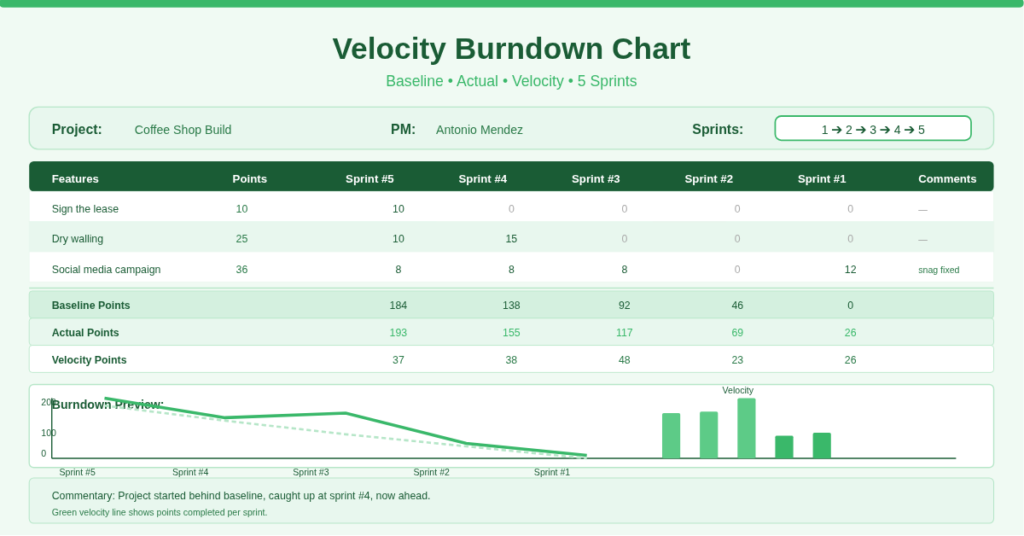 Velocity Burndown Chart Template | ExcelGuru.io