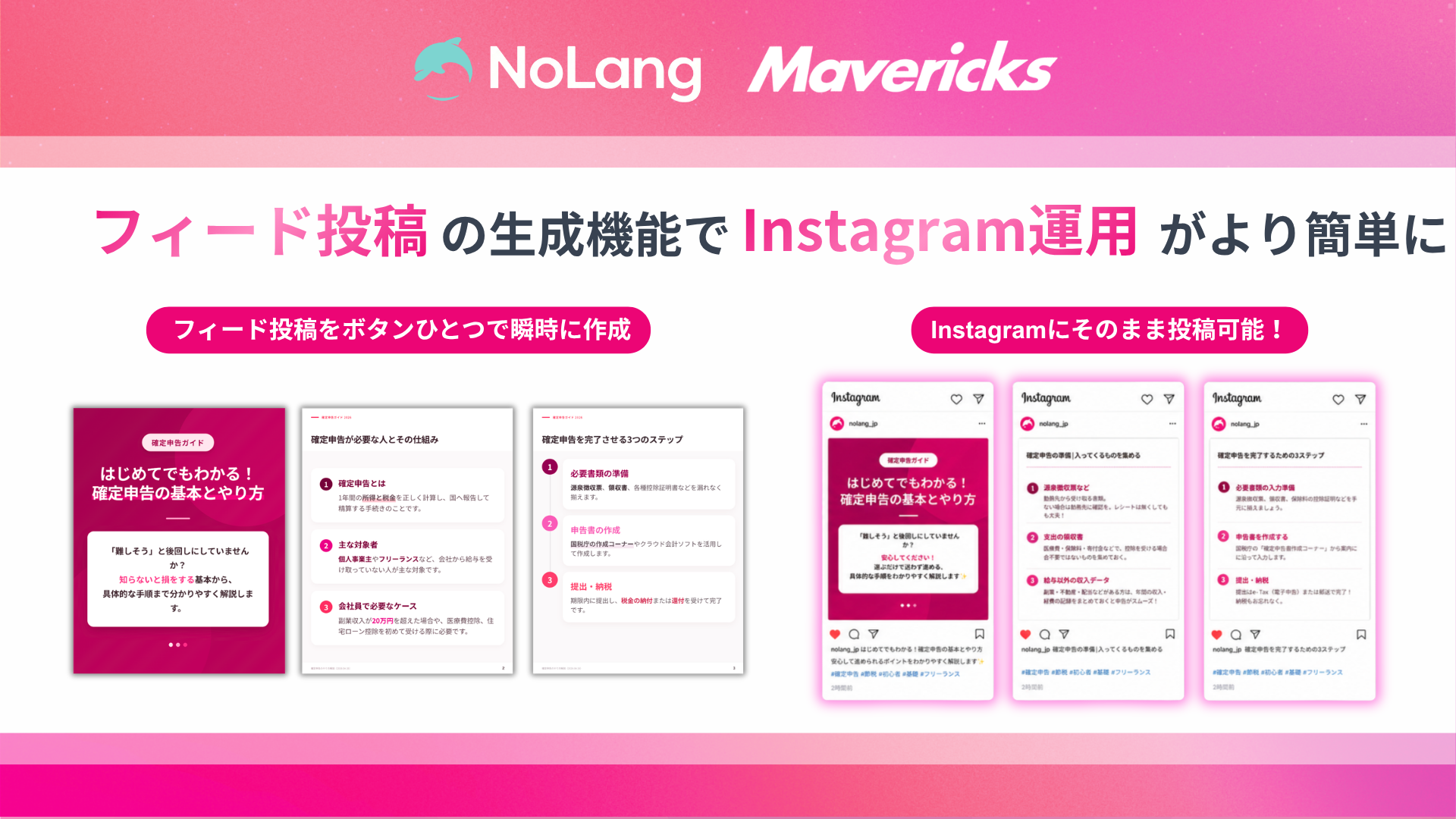 株式会社Mavericksは、動画生成AI「NoLang」のスライド生成機能を近日アップデート!Instagramフィード・カルーセル投稿に ...