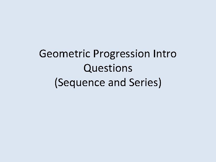 Geometric Progression Intro Questions Sequence and Series Geometric