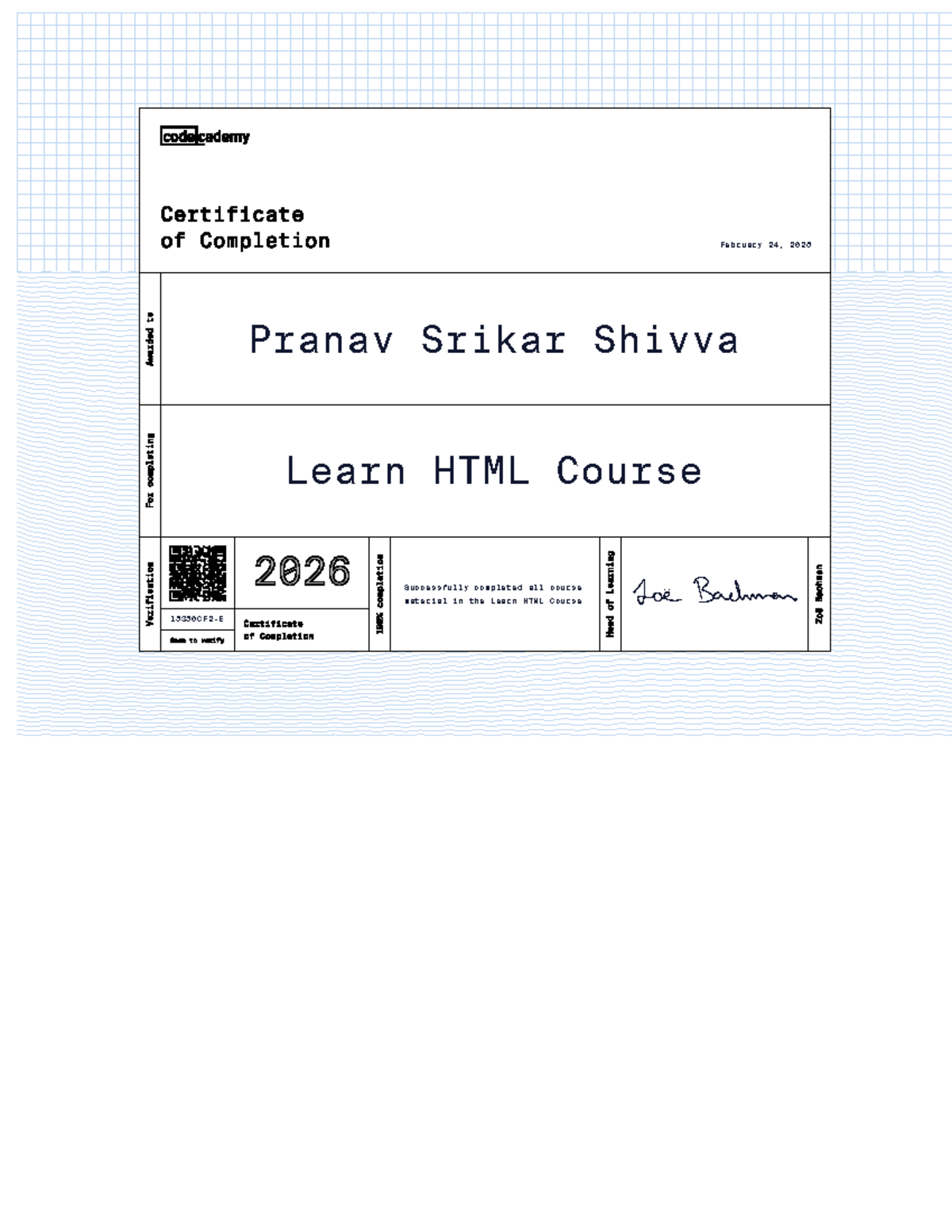 Snap Drag's profile Codecademy - February 24, 2026 Pranav Srikar Shivva ...