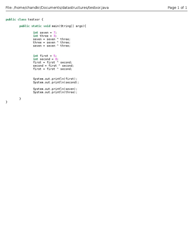 Java XOR Swap Example Code | PDF | Teaching Methods & Materials | Computers