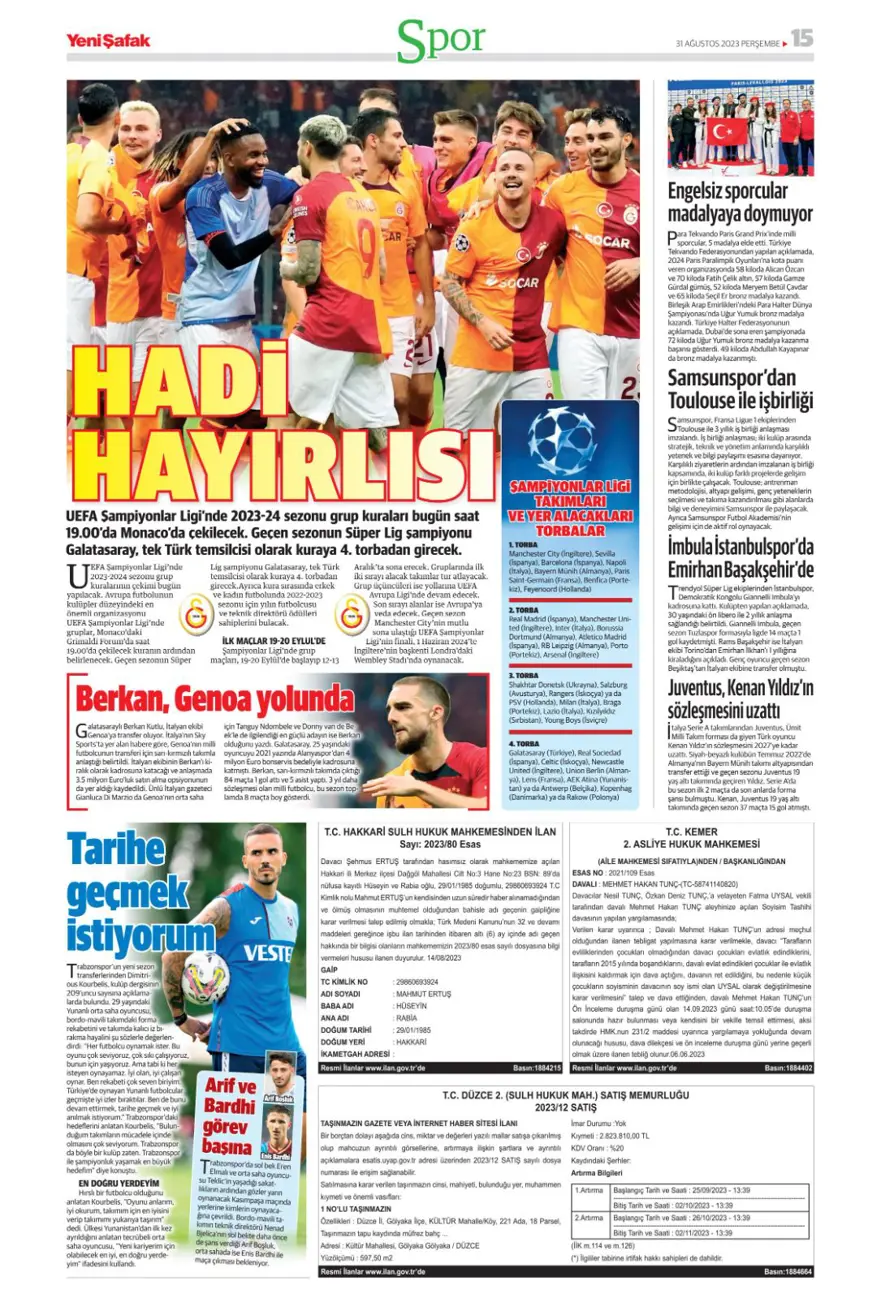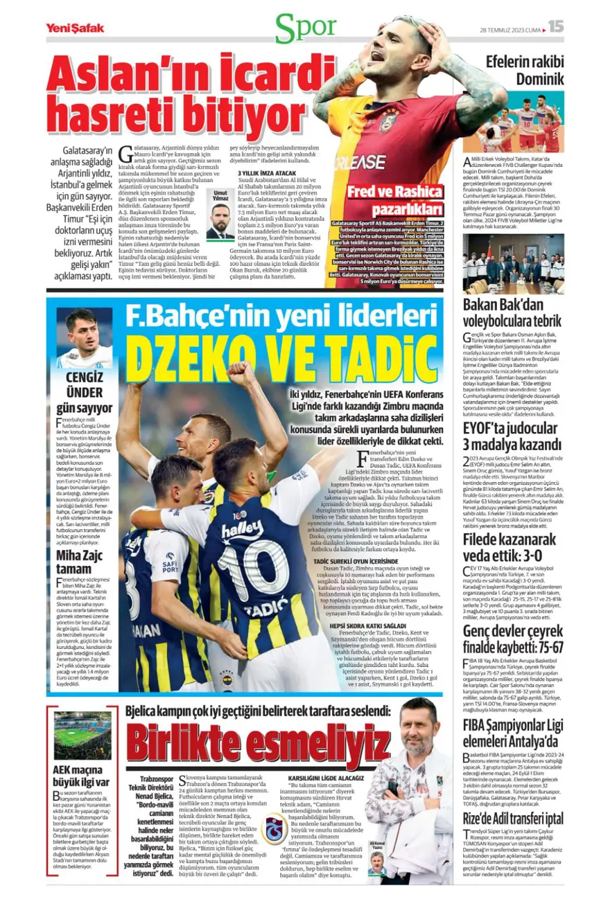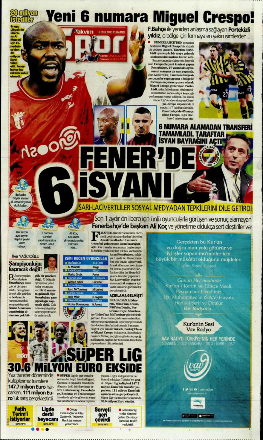"Transferde 4.2 milyar TL'lik rekor'' (16 Eylül 2023 spor manşetleri ...