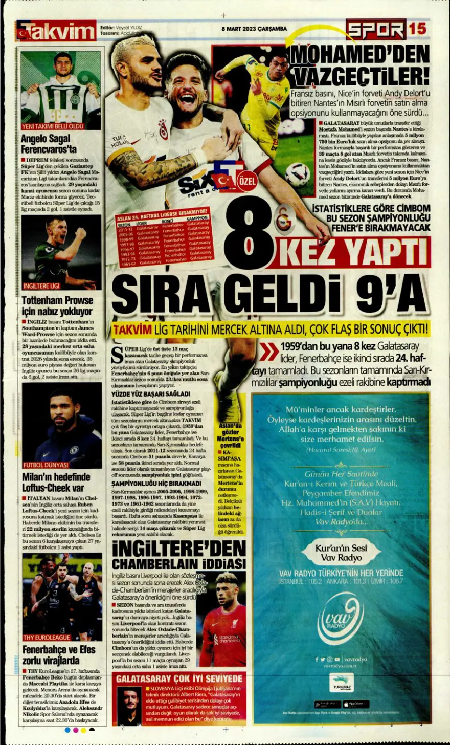 Günün spor manşetleri (8 Mart 2023) | NTV Haber