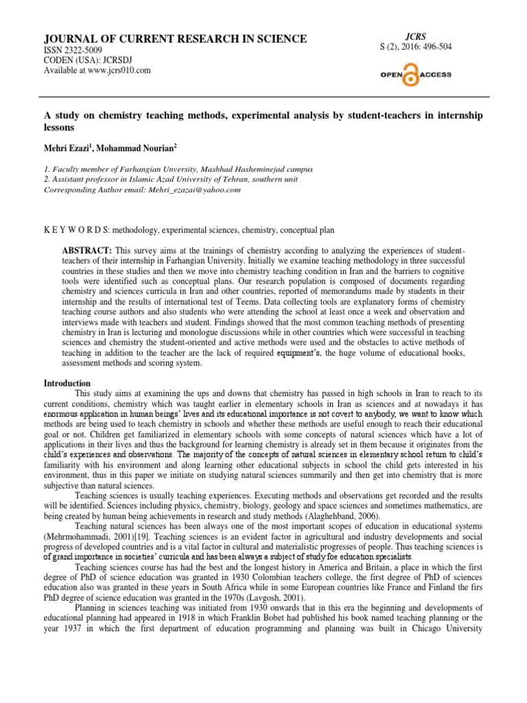 A Study On Chemistry Teaching Methods Ex | PDF | Teaching Method | Teachers