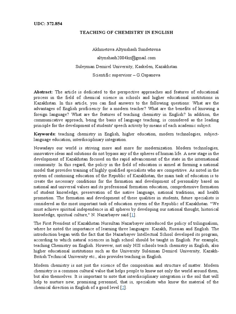 Teaching of Chemistry in Engish | PDF | Teachers | English Language