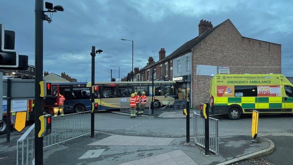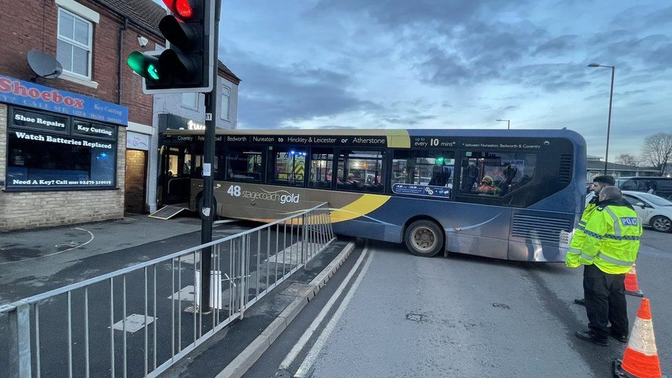 Bus crashes into town centre shop in Bedworth - BBC News