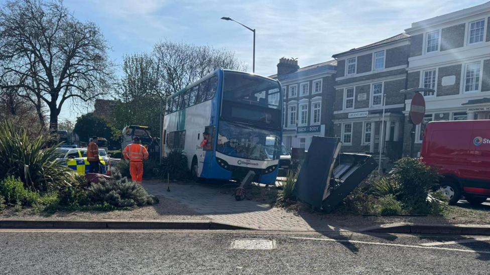 Bedford bus crashes into digital parking display board - BBC News