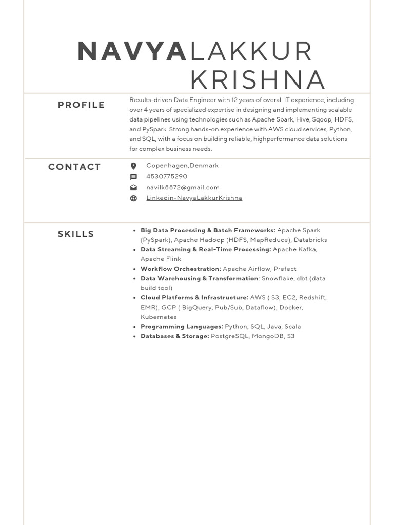 Navya Data Engineer Resume | PDF | Apache Spark | Information ...