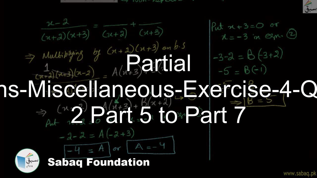 Partial Fractions-Miscellaneous-Exercise-4-Question 2 Part 5 to Part 7 ...