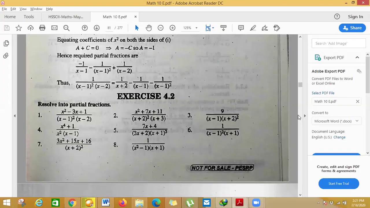 Partial Fractions-Miscellaneous-Exercise-4-Question 1 to 2 Part 4, Math ...