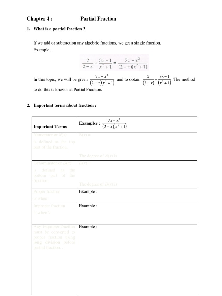 Chapter 4-Partial Fraction - MDIS | PDF | Teaching Methods & Materials