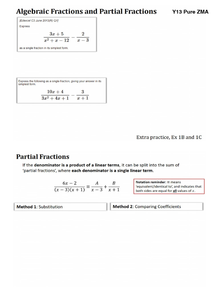 Ch.1b Partial Fractions Lesson Notes | PDF