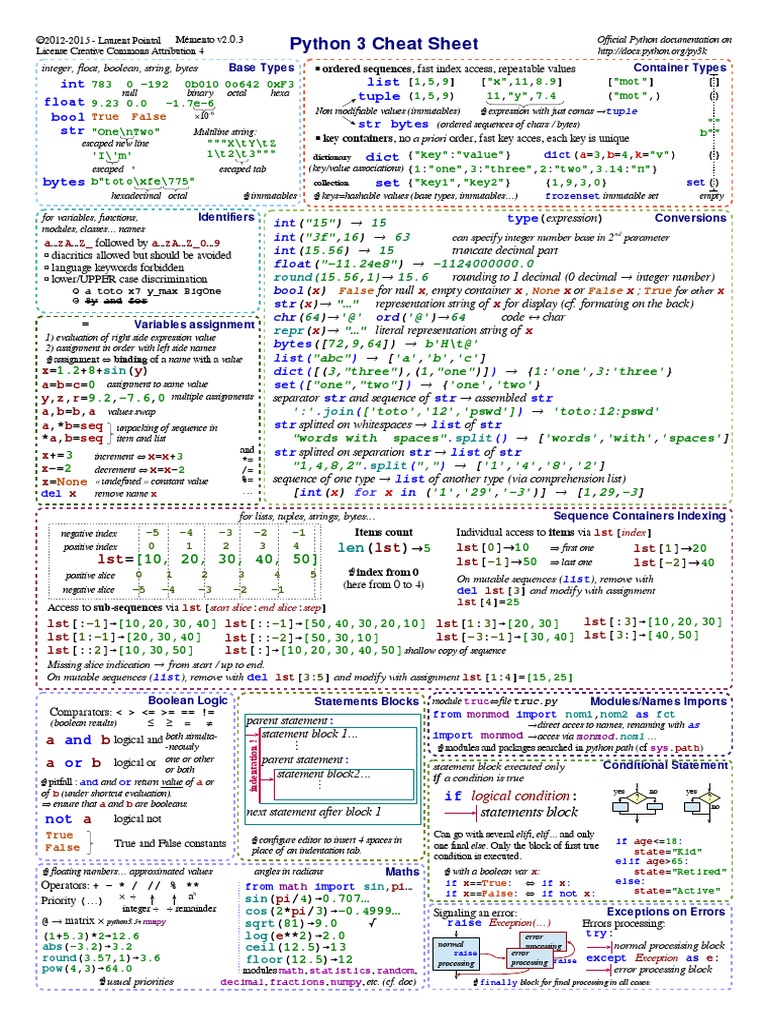 Python 3 Cheat Sheet: Int Float Bool STR List Tuple | PDF | Control ...