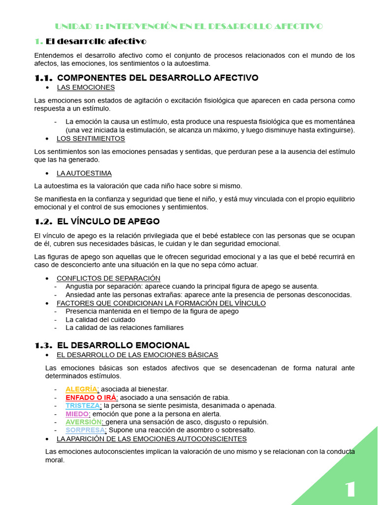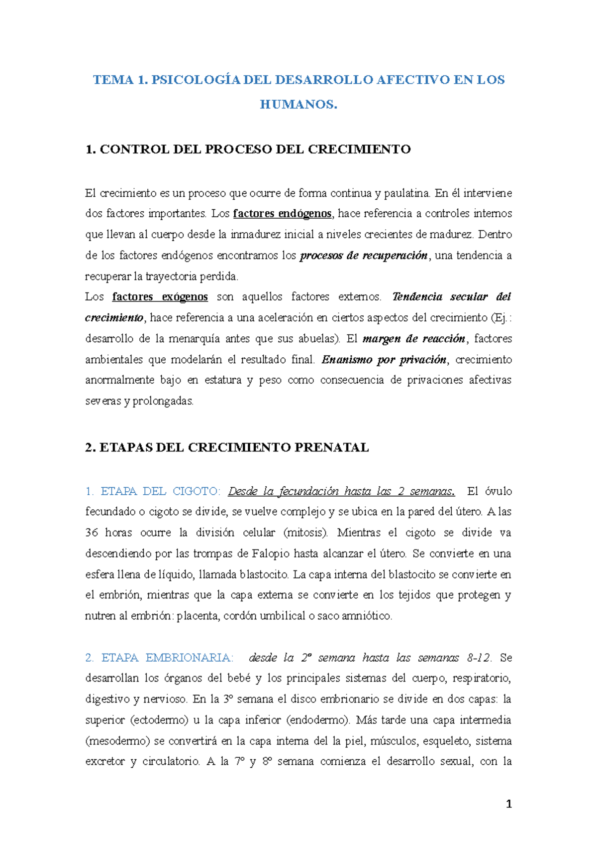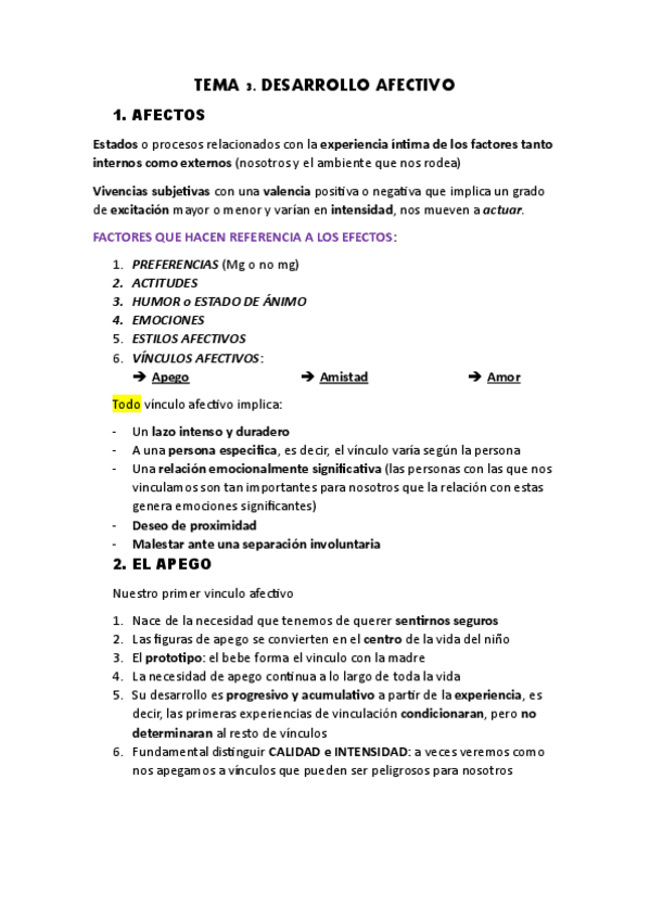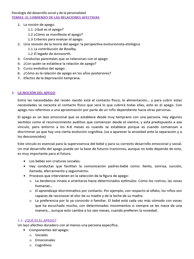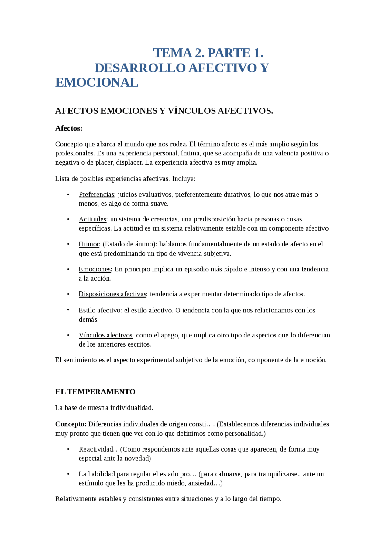 Tema 1 Apuntes Desarrollo Afectivo | PDF | Teoría de apego | Las emociones