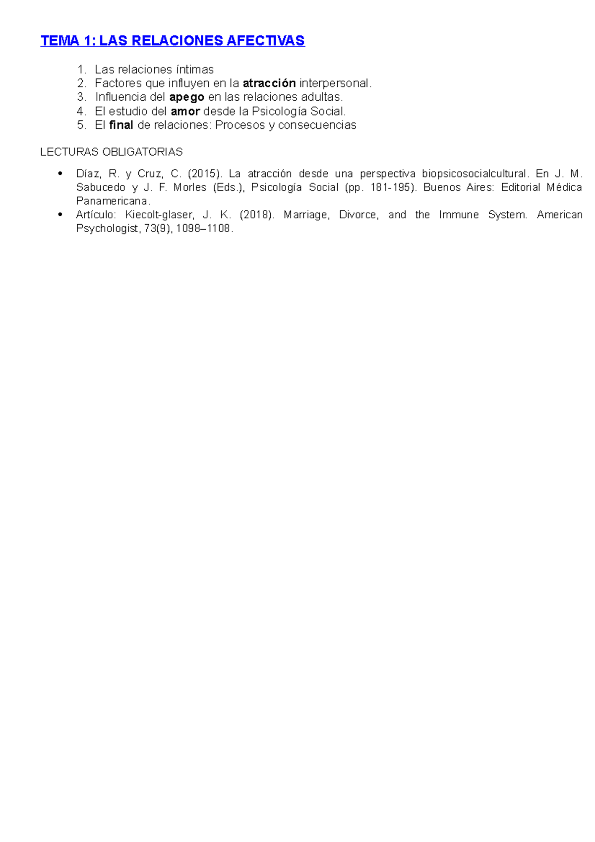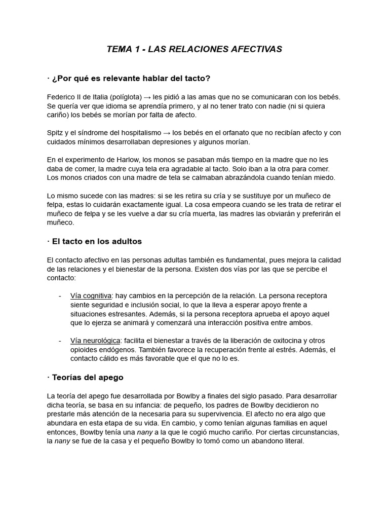 Tema 1 - Las Relaciones Afectivas | PDF | Teoría de apego | Amor
