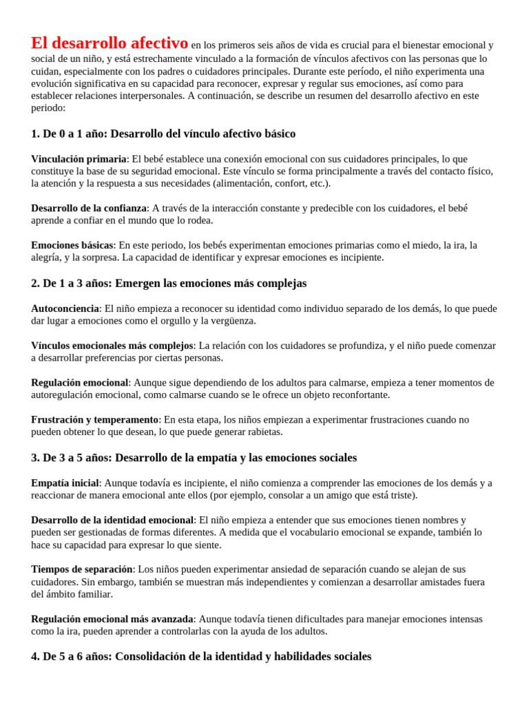 Desarrollo Afectivo Infantil | PDF | Las emociones | Teoría de apego