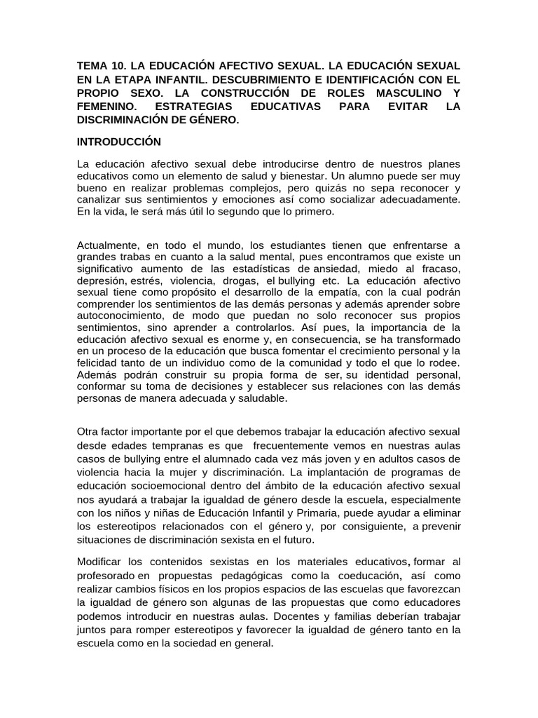 Tema 10 Educación Afectivo Sexual | PDF | Familia | La sexualidad humana