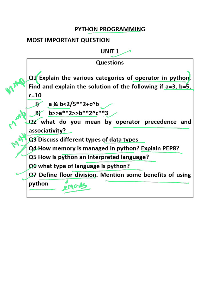 Module-wise Important Questions for Python Programming (CS101) - Studocu