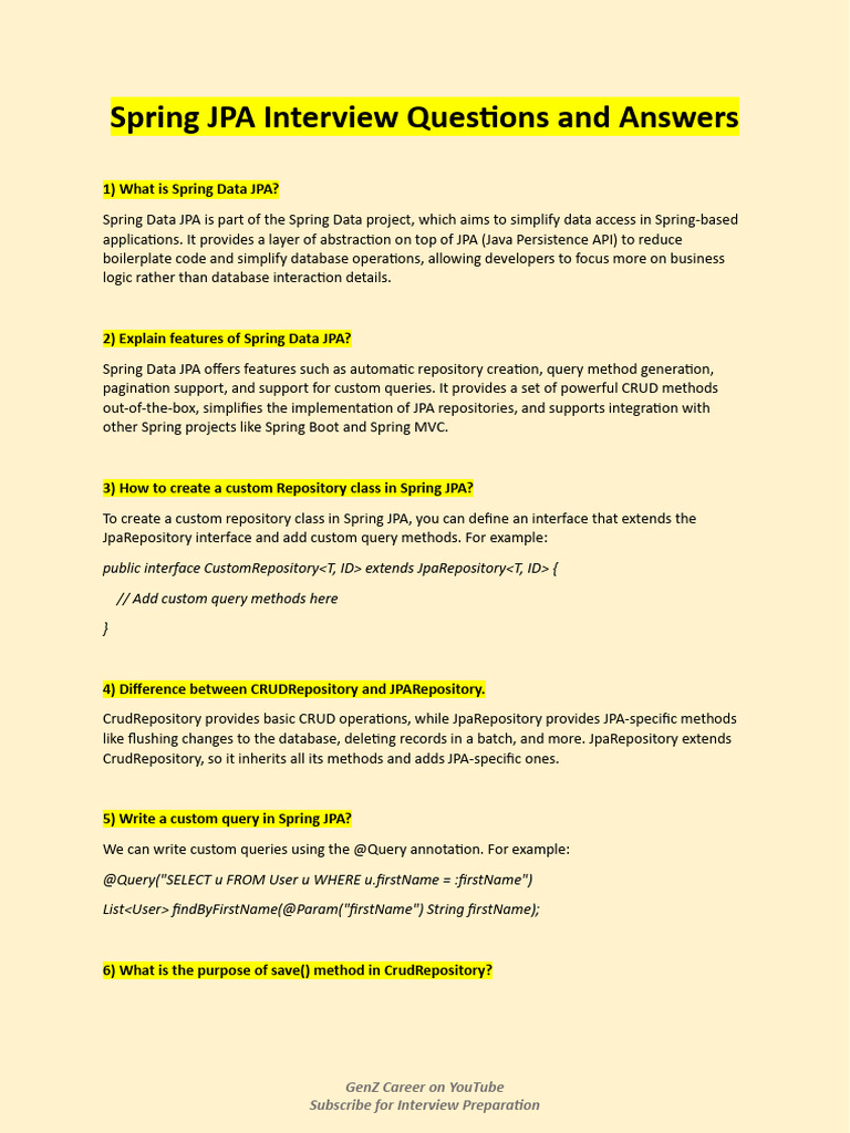 Step 9 - Spring JPA Most Asked Interview Questions and Answers | PDF