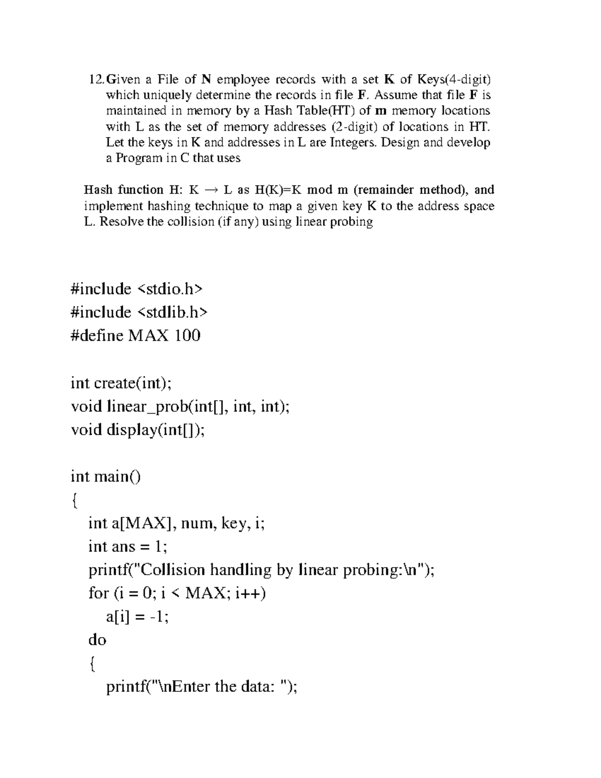 DS12 - C Program for Hash Table with Linear Probing Collision Handling ...