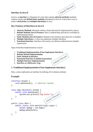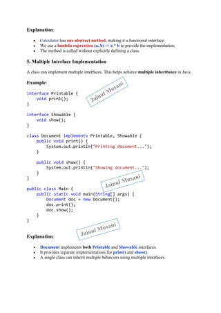 Based on this image's title: “Core Java Interface Concepts for BCA Studetns | PDF”