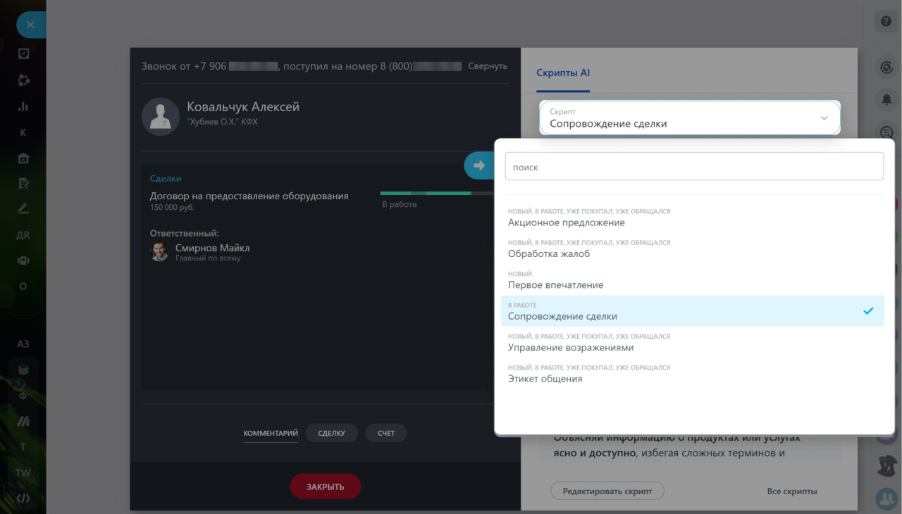 Скрипты продаж и Речевая аналитика с AI в CRM