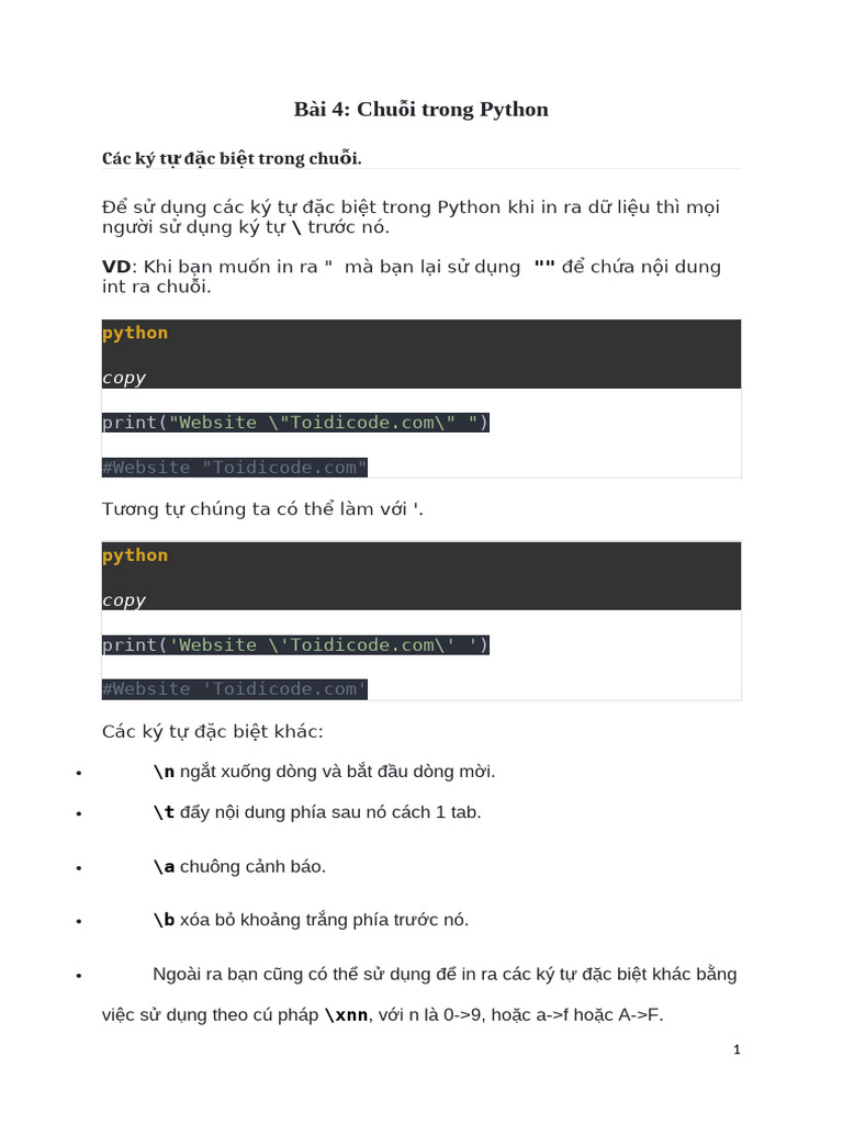 Chương 03. Kiểu dữ liệu chuỗi trong Python | PDF