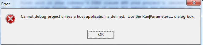Delphi编译dll时出错"Cannot debug project unless a host application is ...