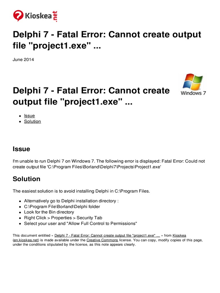 Delphi 7 Fatal Error Cannot Create Output File Project1 Exe 28400 ...