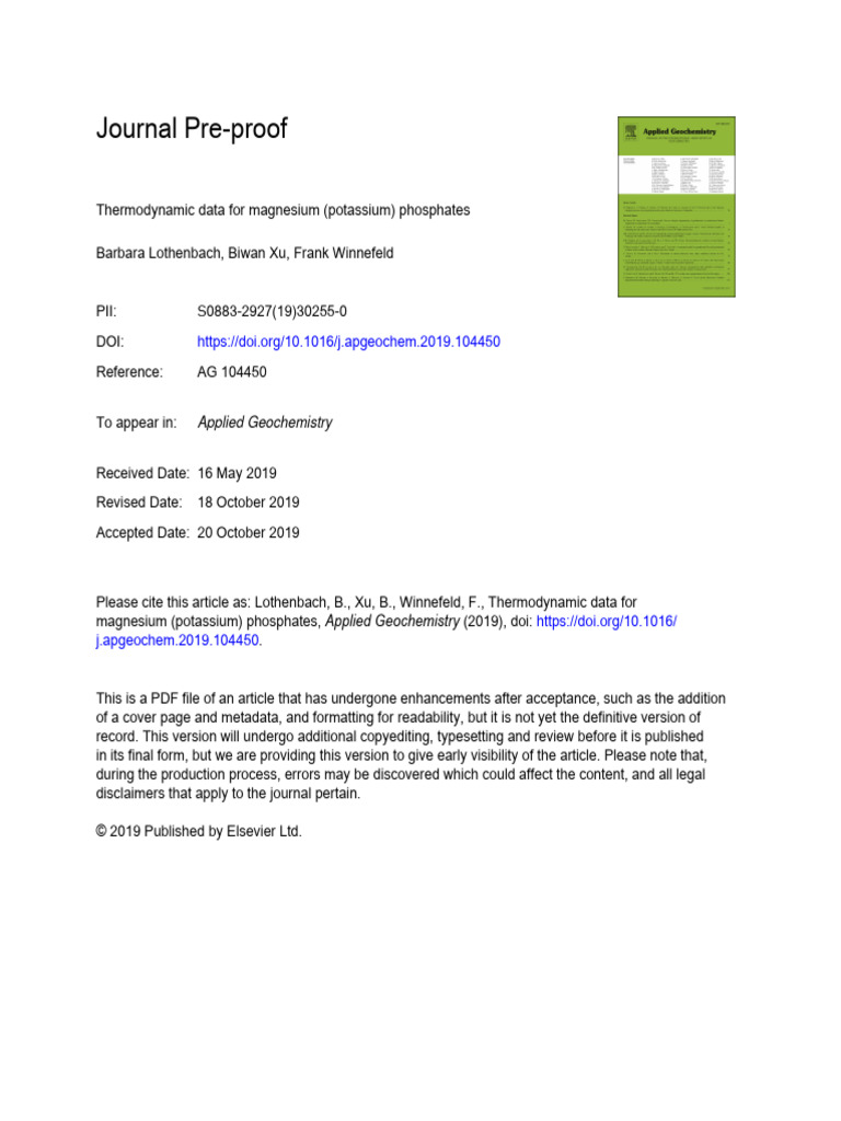 磷酸镁 (钾) 的热力学数据1 | PDF | Solubility | Magnesium