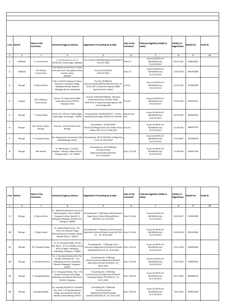 List of Registered Contractors 2025 | PDF