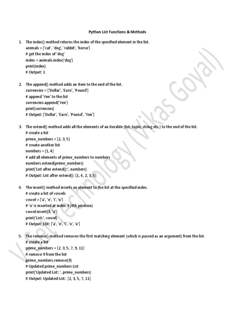 Python Tutorials: List of functions of list Datatypes - DevOpsSchool.com