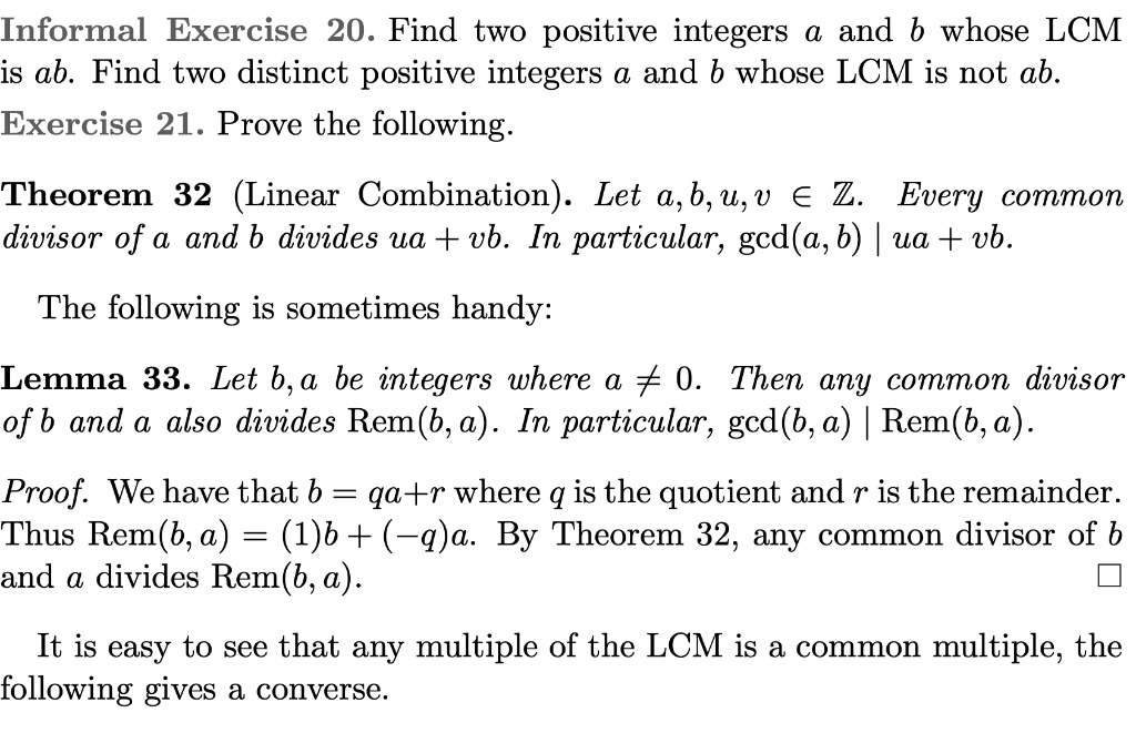 informal exercise 20 find two positive integers a and b whose lcm is ab ...