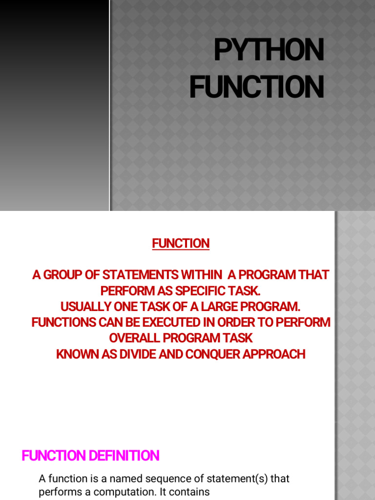 Based on this image's title: “Python Functions Explained | PDF | Computers”