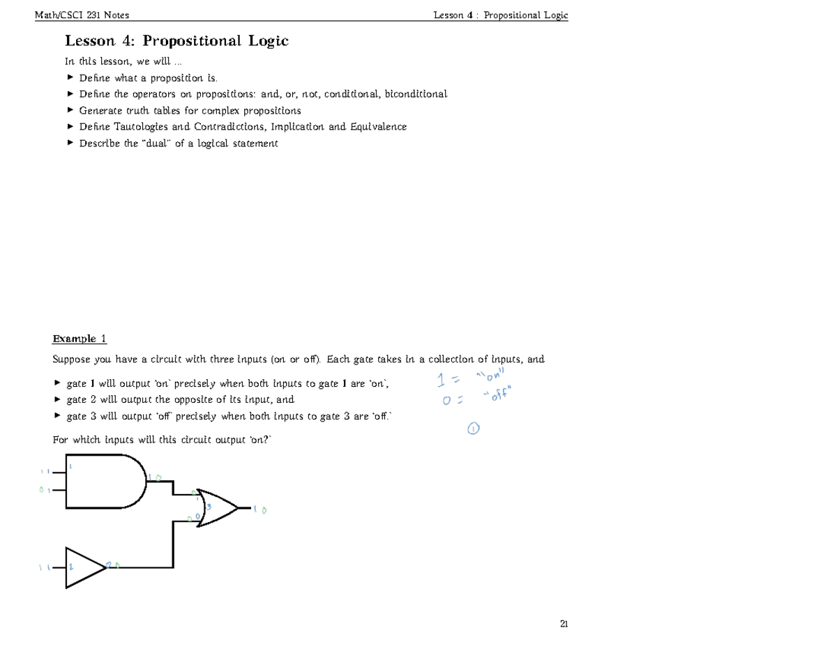 Math/CSCI 231 Final Exam Notes: Propositional Logic Overview - Lesson 4 ...