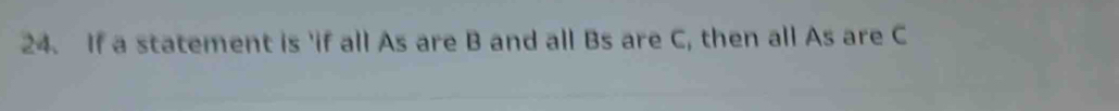 Solved: If a statement is 'if all As are B and all Bs are C, then all ...