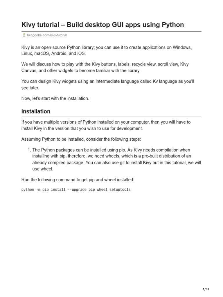 Kivy Tutorial Build Desktop GUI Apps Using Python | PDF | Graphical ...