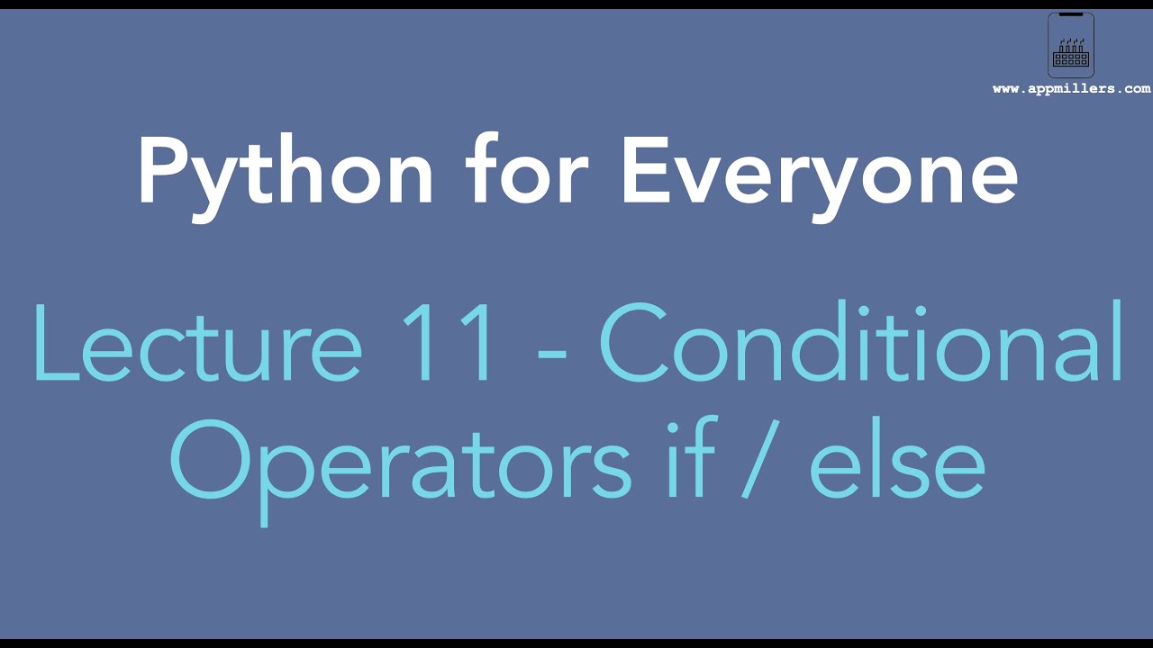 Python for Everyone: Lecture 11 - Conditional Operators if / else - YouTube