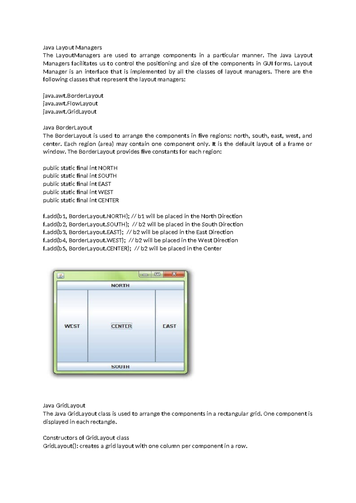 Java Layout Managers - this notes prepared for the better understanding ...