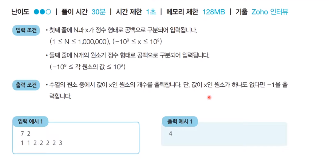 [Python] 이코테 정렬된 배열에서 특정 수의 개수 구하기 (Binary Search)